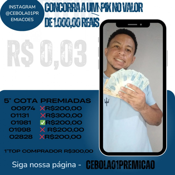 E também o Top comprador leva R$300,00 no dia do sorteio.