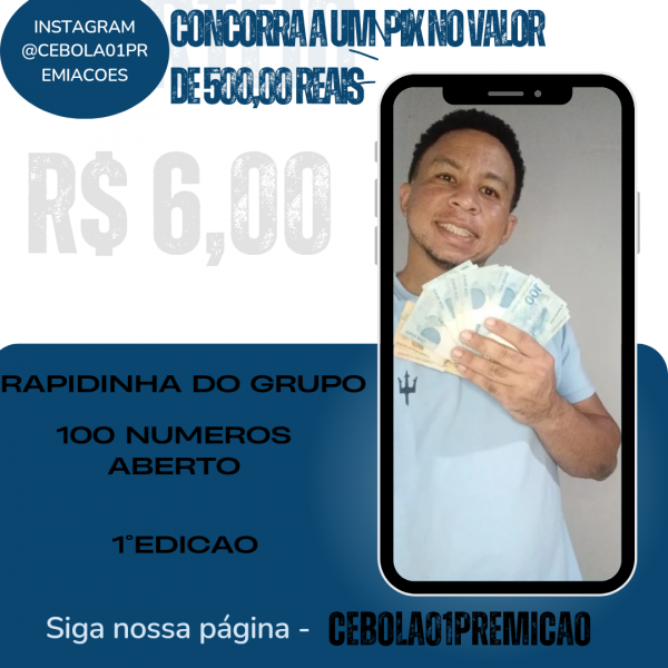 1°Ação do rapidinha do grupo valendo R$500,00 no pix por apenas R$6,00